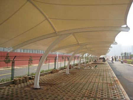 膜結(jié)構中所使用的膜材料每平方壹公斤左右,由于自重輕,加上鋼索、鋼結(jié)構高強度材料的采用。